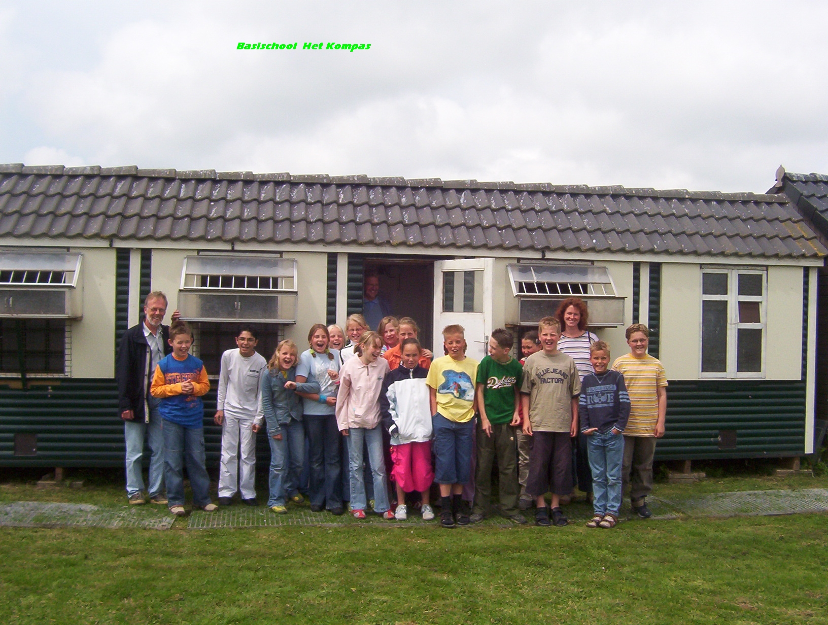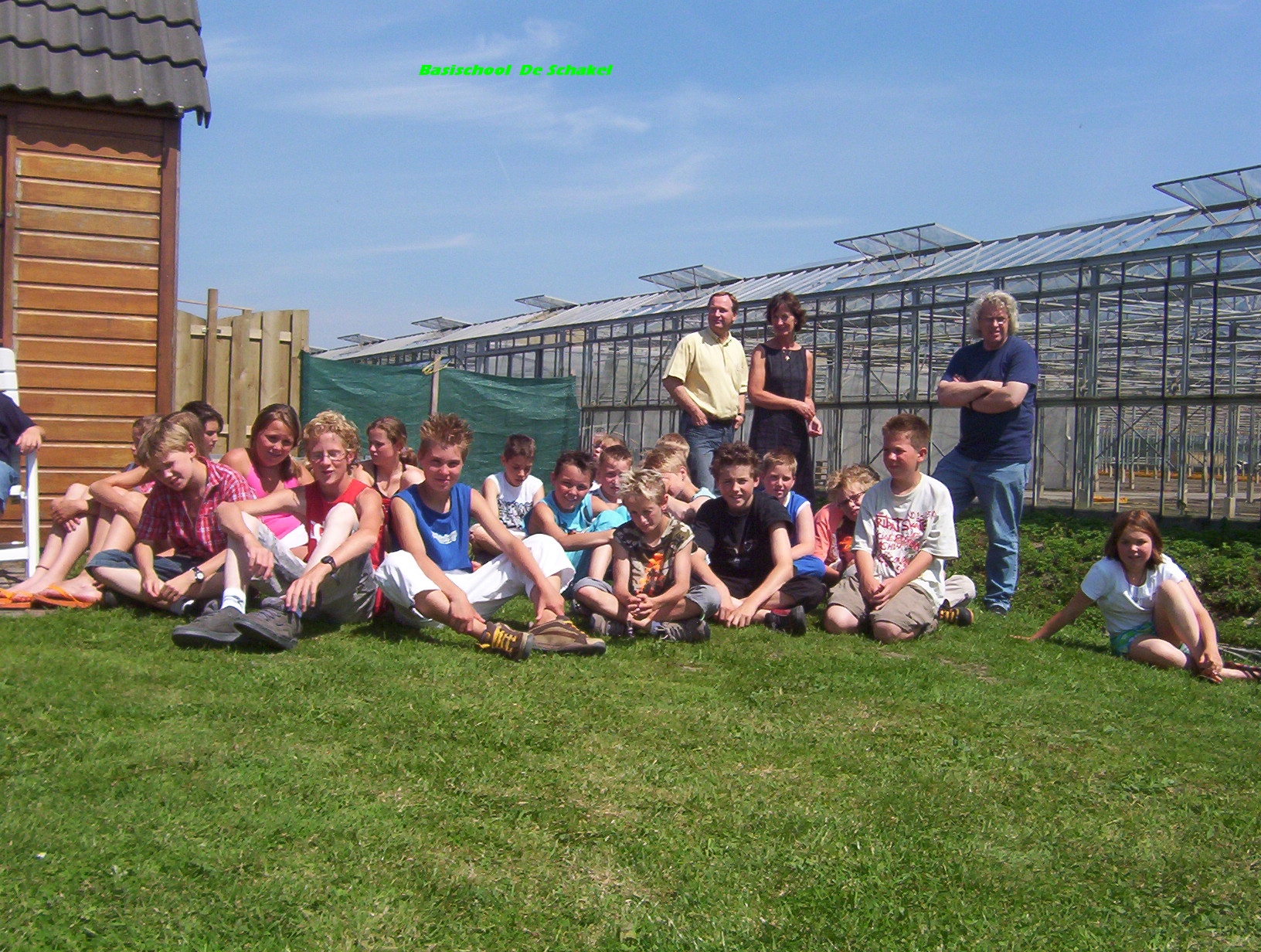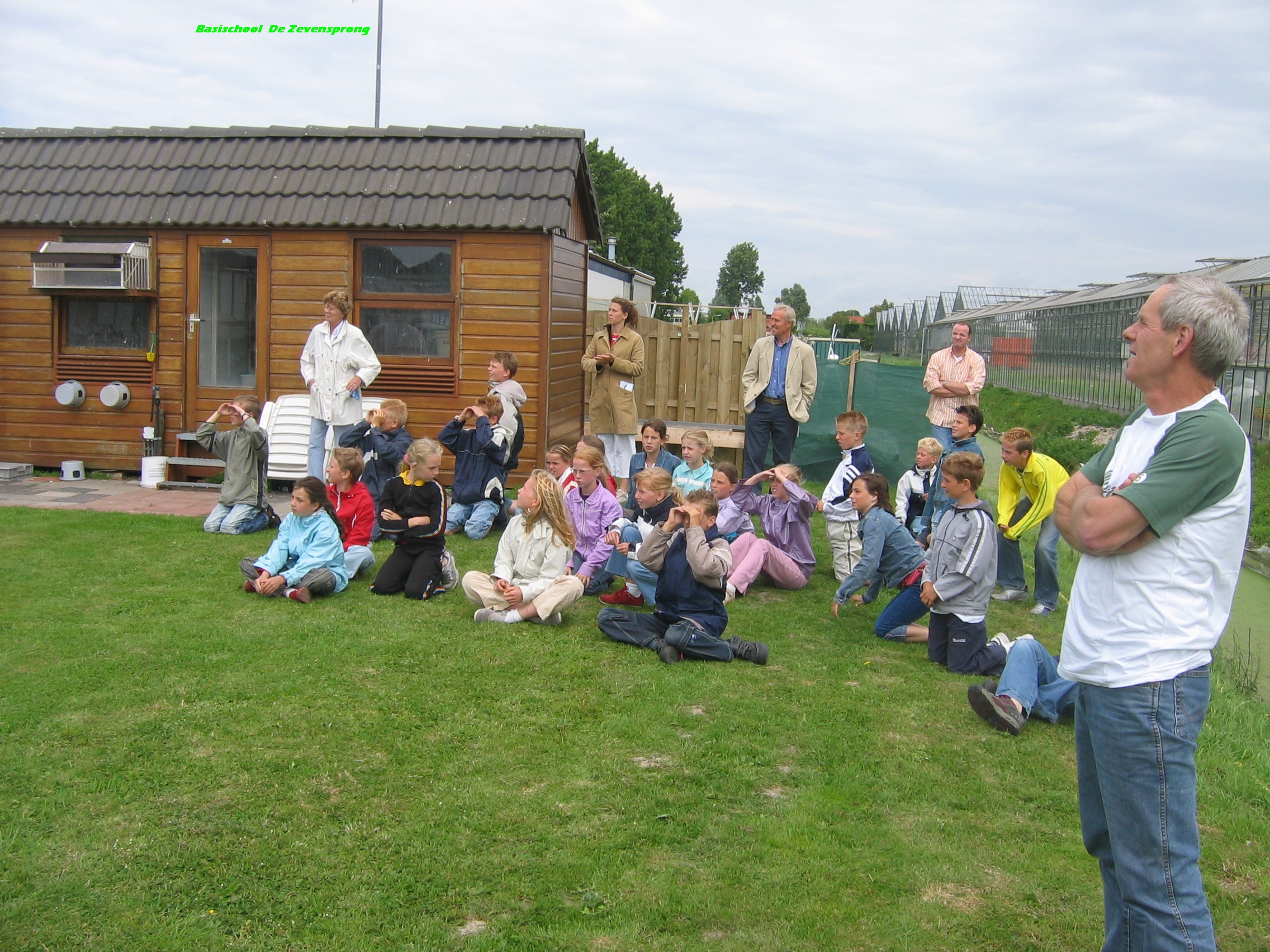 De leerlingen van basisschool de Schakel op bezoek bij het duivenhok (met op de voorgrond een trage leerling, Peter Veenman Barcelona specialist) |